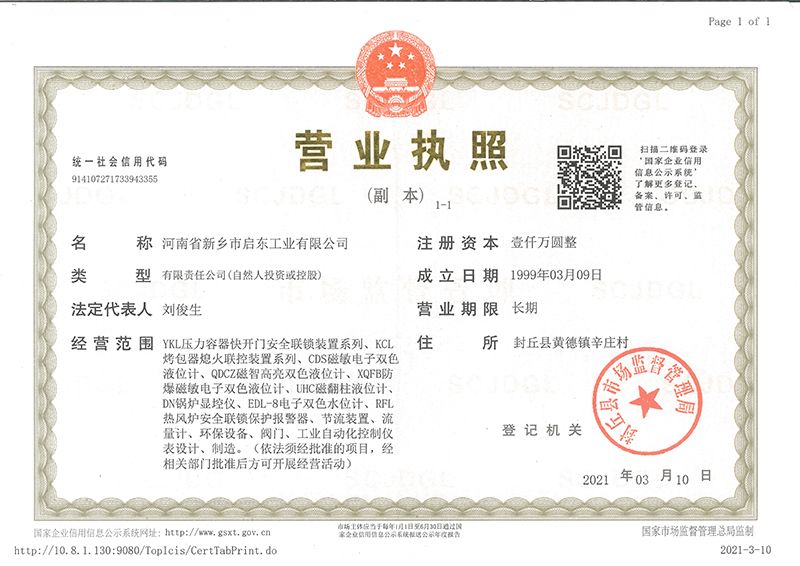 河南省新鄉(xiāng)市啟東工業(yè)有限公司始建于1987年,是專注研發(fā)、生產(chǎn)自動化儀器儀表(主要與壓力容器、鍋爐等容器配套使用)的廠家。主要產(chǎn)品有液位計(磁敏雙色型、磁翻柱型等)系列、烤包器熄火聯(lián)控裝置系列、壓力容器快開門安全聯(lián)鎖保護裝置系列、鍋爐報警器系列。二十多年來,公司產(chǎn)品暢銷國內(nèi)并遠(yuǎn)銷俄羅斯、蒙古與東南亞,深得廣大用戶的信賴和好評。我們多年來致力于自動化儀器儀表的研制生產(chǎn),公司現(xiàn)具有完善的生產(chǎn)、試驗、檢測手段和設(shè)備。科技創(chuàng)新、誠信服務(wù),是我們不變的經(jīng)營理念,我們將以強有力的技術(shù)支持及售后竭誠為客戶提供良好的服務(wù)。  2012年我公司成功研發(fā)了KCL系列烤包器熄火聯(lián)控裝置,并于2013年2月2日榮獲中華人民共和國國家知識產(chǎn)權(quán)局辦法的《實用新型**證書》<**號:2021202257735>該產(chǎn)品廣泛應(yīng)用于唐鋼等大型鋼鐵企業(yè),為烤包器安全作業(yè)提供了有力的保障。  2002年我公司成功研發(fā)磁敏電子雙色液位計獨特的高亮度LED紅綠雙色顯示,獲得了專家的首肯和用戶的一致好評。在此基礎(chǔ)上我公司研發(fā)人員十年磨一劍,致力于XQFB-1防爆型磁敏雙色液位計的研發(fā),于2013年12月27日由國家防爆電器產(chǎn)品質(zhì)量監(jiān)督檢驗中心檢驗合格并頒發(fā)防爆合格證書<編號:cnex19.0883>。該產(chǎn)品性能得到了充分的發(fā)揮,廣泛應(yīng)用于含有Ⅱ類A·B級T1-T4組可燃?xì)怏w或蒸汽與空氣混合形成的爆炸性混合物的0區(qū)、1區(qū)危險場所。連接用戶DCS或PLC系統(tǒng)實現(xiàn)遠(yuǎn)距離集中顯示和控制,從而實現(xiàn)節(jié)能、數(shù)字化管理。為用戶增加了一定的經(jīng)濟效益和社會效益,。2014年公司成功申請了夢潤儀表的logo,新的品牌新的形象,夢潤儀表是啟東的LOGO, 歡迎新老用戶前來洽談合作。  我們一如既往地注重科研的投入,憑借產(chǎn)品的不斷更新、加大科技含量,進一步拓展市場。我們相信品質(zhì)成就未來,以過硬質(zhì)量、優(yōu)惠價格、完善的售后服務(wù)熱忱歡迎廣大客戶來我司視察指導(dǎo)、洽談業(yè)務(wù);精誠合作,共創(chuàng)輝煌!